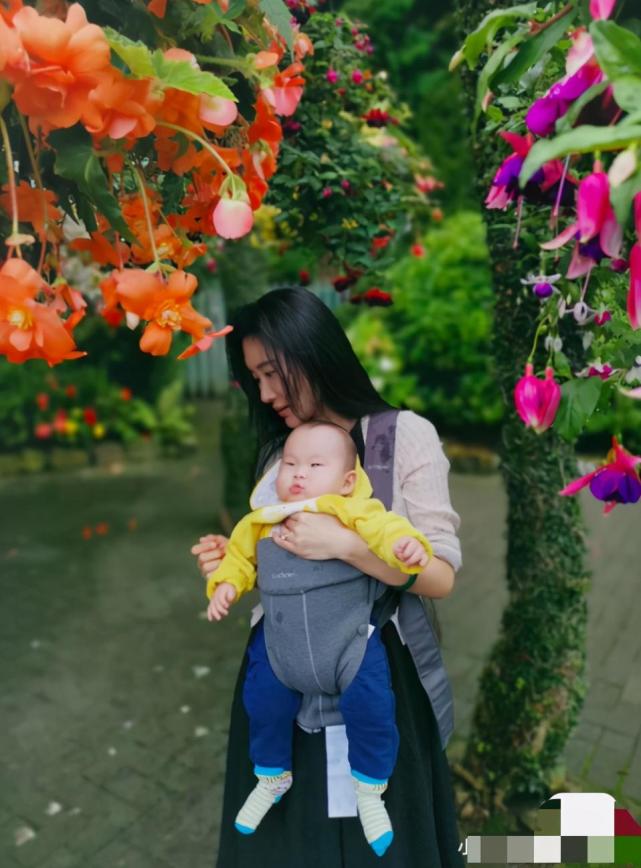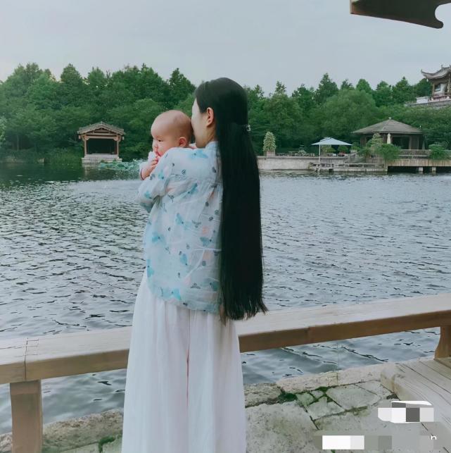 在其他的几张照片里,张纪中要么坐在大桌前喝茶吃糕点,要么背着儿子上山去寺庙,整个画面相当和谐。